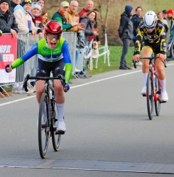 Für eine faustdicke Überraschung sorgte zudem Till Nieländer in der Schülerklasse U15. Aus der ersten Runde kam der RSVer zusammen mit dem DM-Fünften und zweifachen NRW-Meister Arne Weißer (VfR Büttgen) und einem komfortablen Vorsprung auf das qualitativ und quantitativ gut besetzte Fahrerfeld der 30 Schüler. In der Folgezeit bauten die beiden ihren Vorsprung deutlich aus, nach hinten raus fehlte aber die Einigkeit um auch den Rundengewinn herauszufahren. Auf der ansteigenden Zielgeraden... >>> weiterlesen.